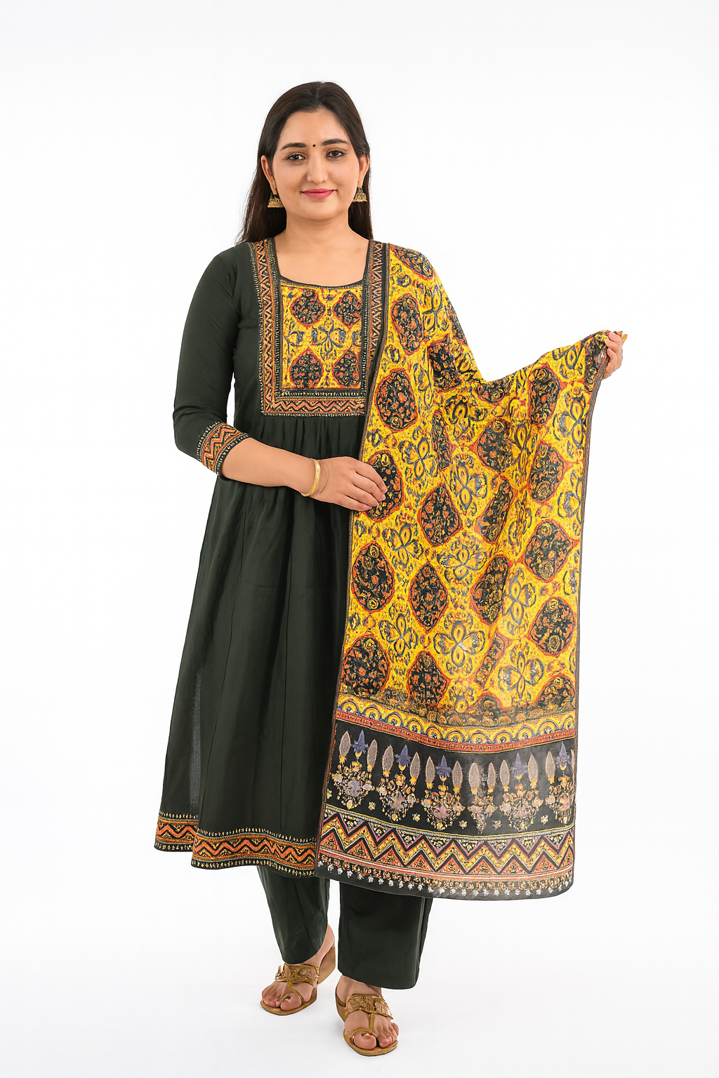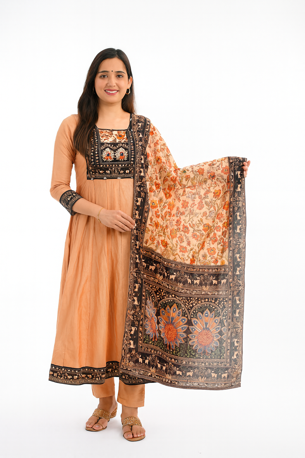 Step into timeless elegance with our Aaira Ankle Pants Ladies' Gown, a perfect blend of sophistication and tradition. Crafted from soft, breathable silk, this graceful ensemble ensures both style and comfort for any occasion.The classic gown exudes refined charm, while the vibrant printed dupatta adds a touch of tradition, making this outfit a stunning statement piece. Whether for festive gatherings or special celebrations, this ensemble is designed to elevate your elegance effortlessly.
