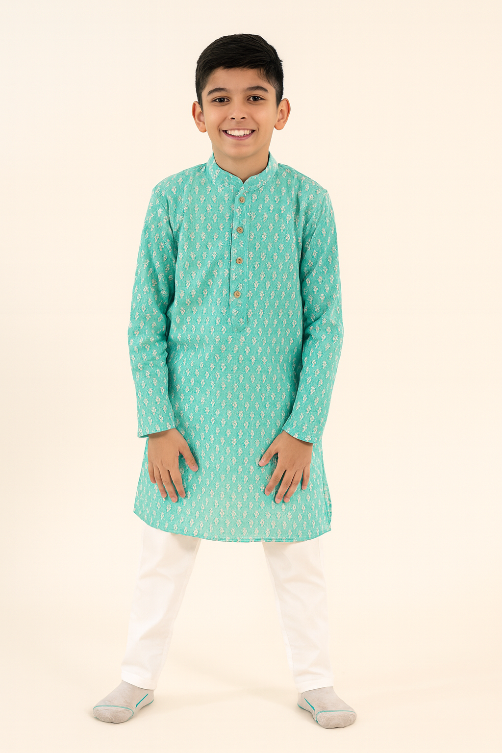 Overall, the boys' Sherwani suit in a sequence finish is a timeless and sophisticated outfit that showcases traditional South Asian fashion. It is perfect for special occasions such as weddings, festivals, or cultural celebrations. The intricate sequin work, comfortable fit, and range of sizes make it a popular choice for boys who want to make a stylish and elegant statement.