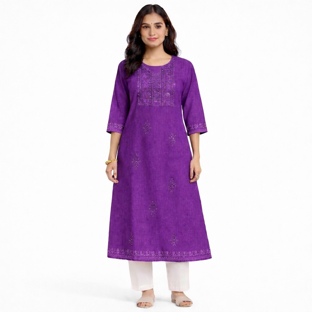Graceful and elegant, this purple embroidered kurta set blends traditional craftsmanship with modern styling.