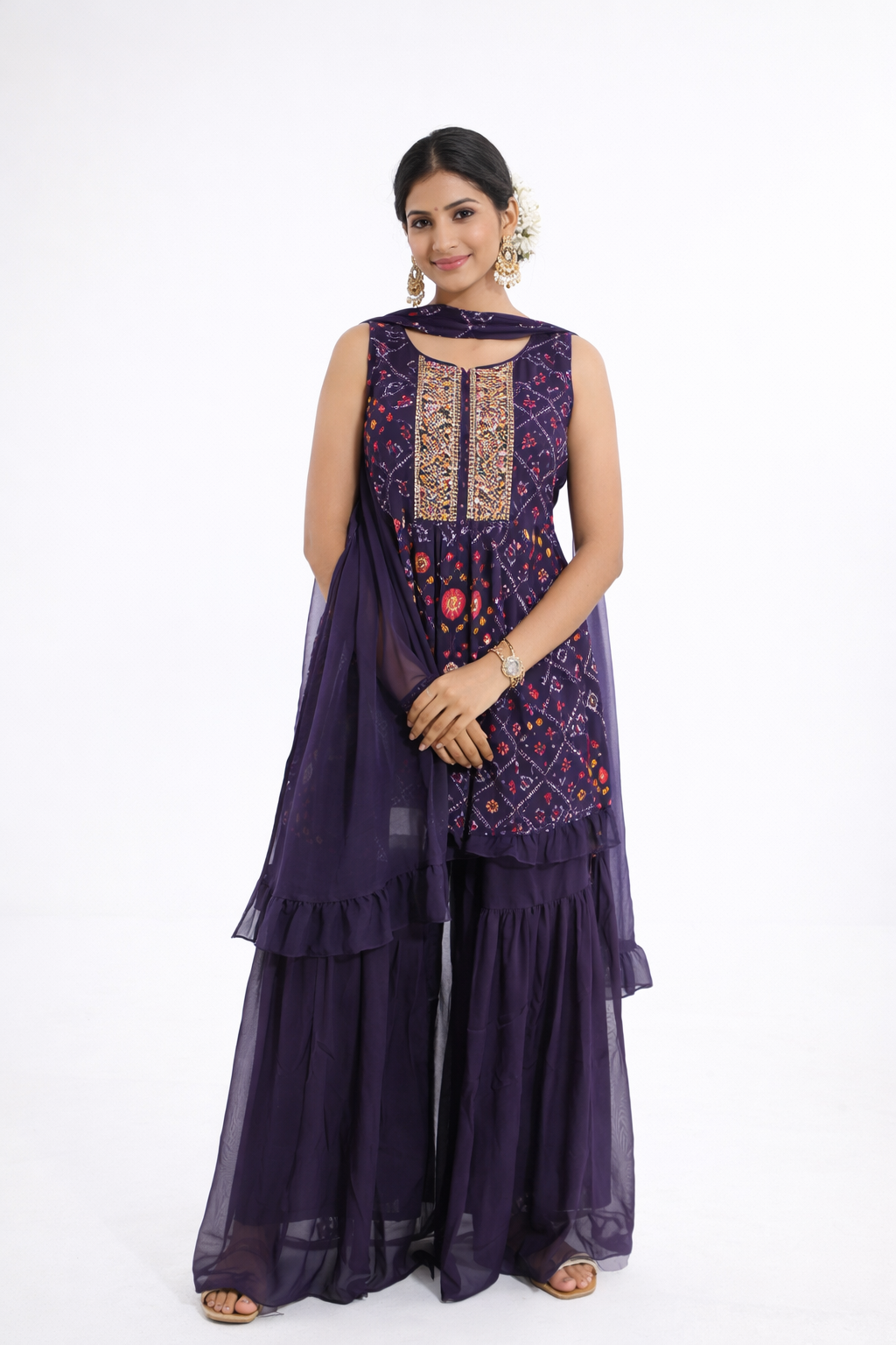 The soft georgette short top with plazo in Bandhani print is a versatile and stylish choice for those who appreciate the beauty of Indian attire.