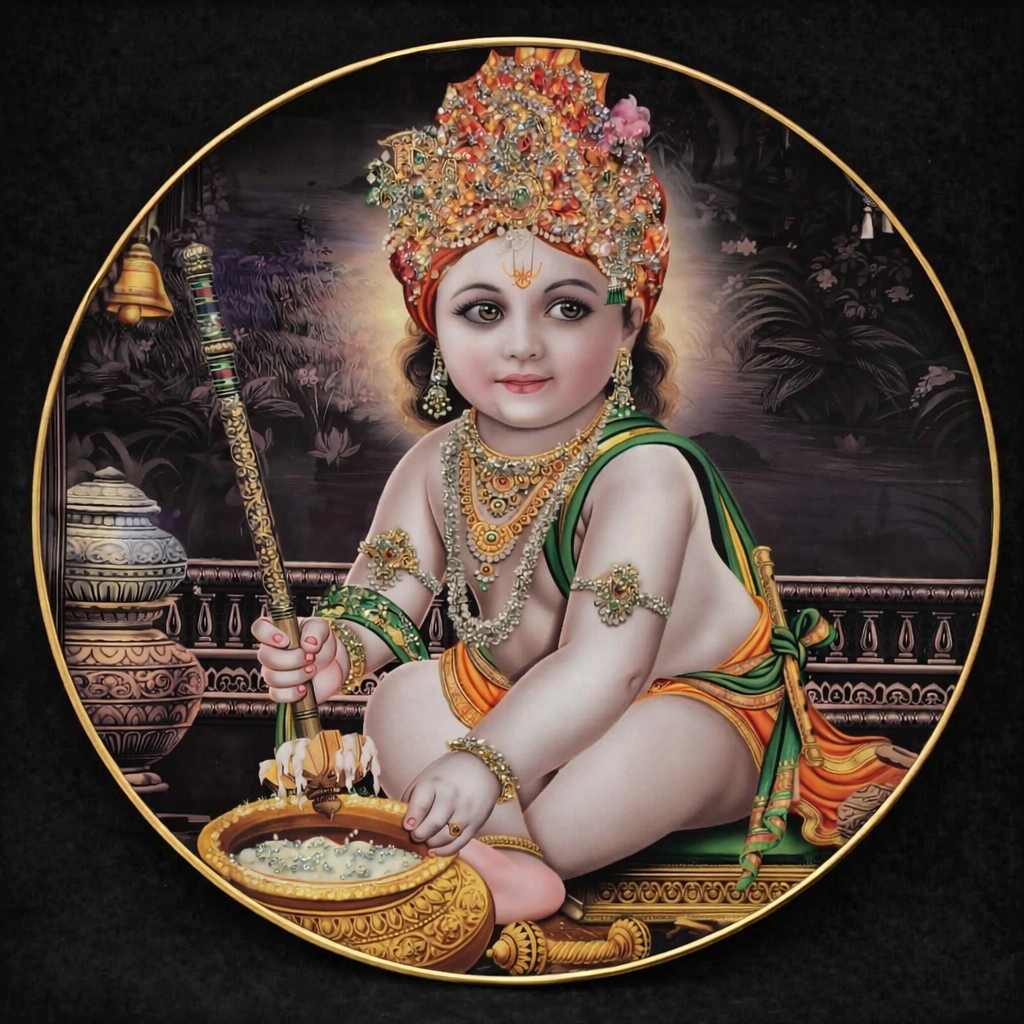 Short Website Description:A beautiful 16×16 round Bal Krishna decorative frame featuring divine artwork, elegant detailing, and a soothing premium finish—perfect for adding spiritual grace to any space.
