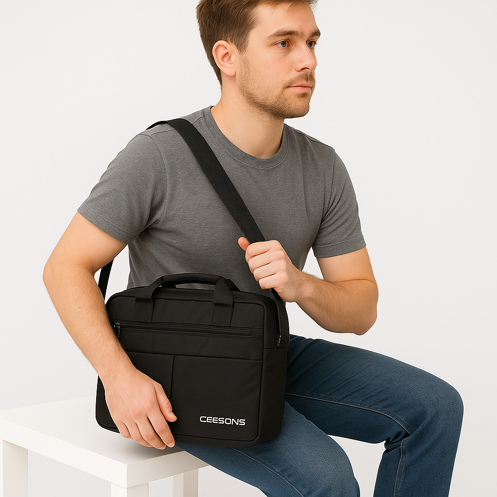 CEESONS Laptop Bag – (Side View Model)Introducing the stylish and durable CEESONS laptop bag in Teal Blue – designed for modern students and professionals who need both functionality and fashion. Lightweight, sleek, and spacious, this bag is perfect for school, college, office, or travel. The clean side pose model presentation highlights its premium finishing and elegant color tone, ideal for high-quality website display.