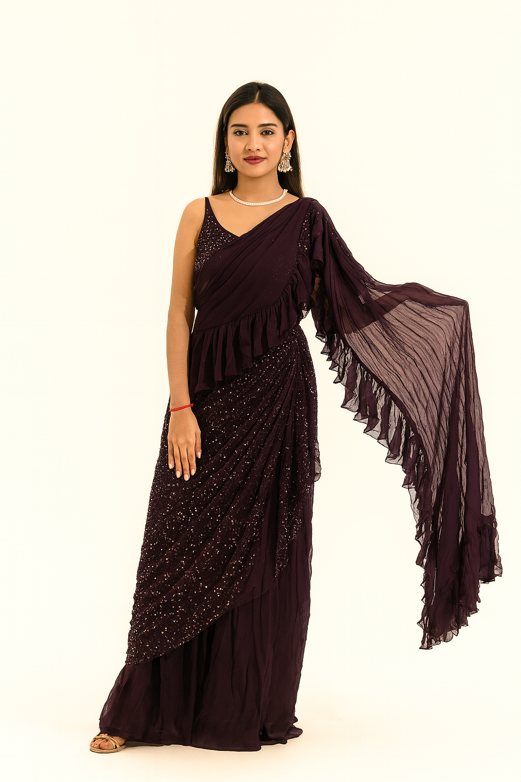 Introducing the DAMYANTI Ladies Gown, a stunning piece enhanced with intricate tiki work.