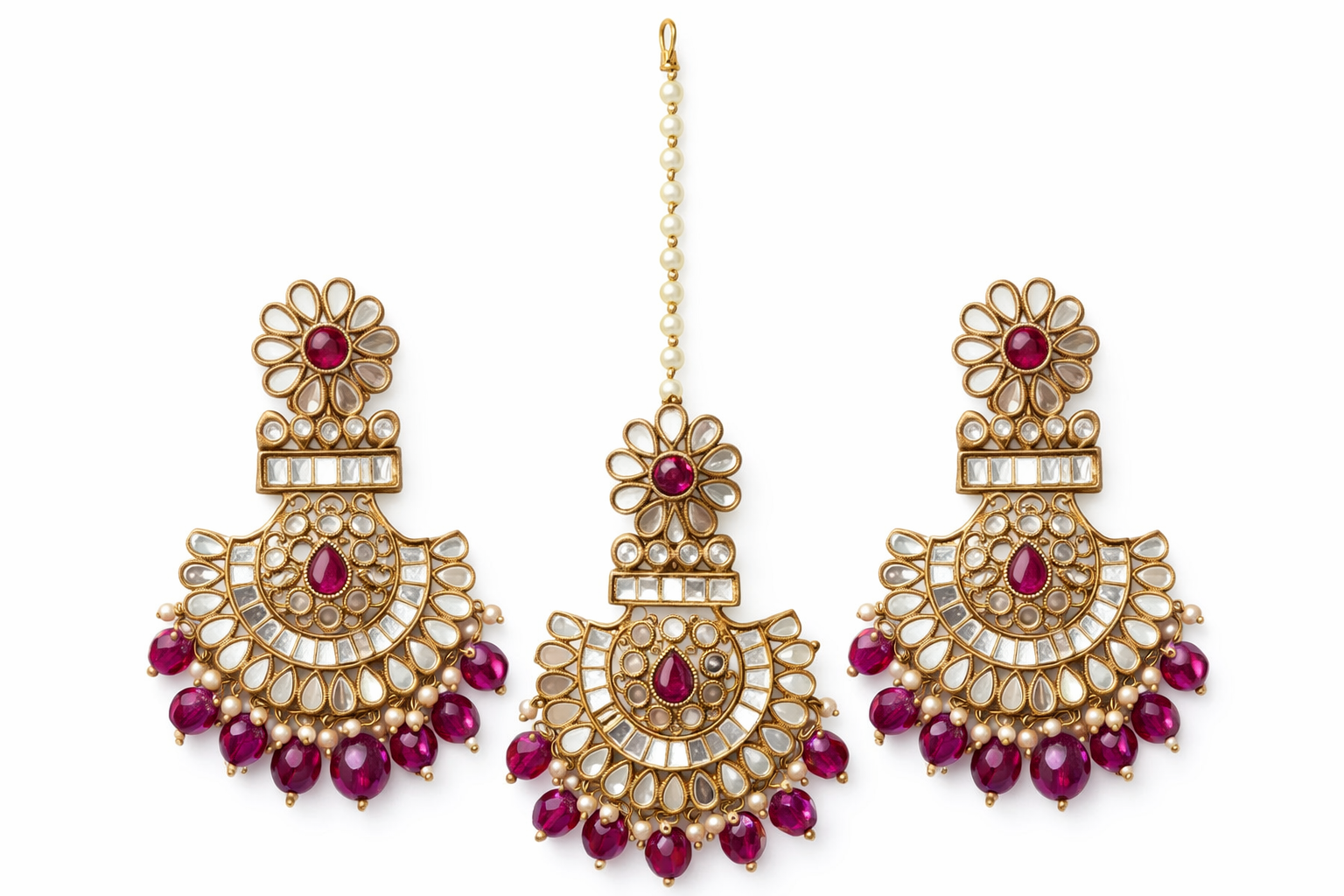 Matching earrings and maang tikka set