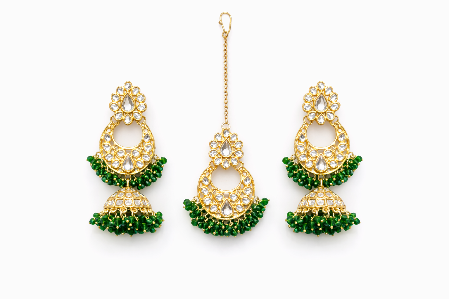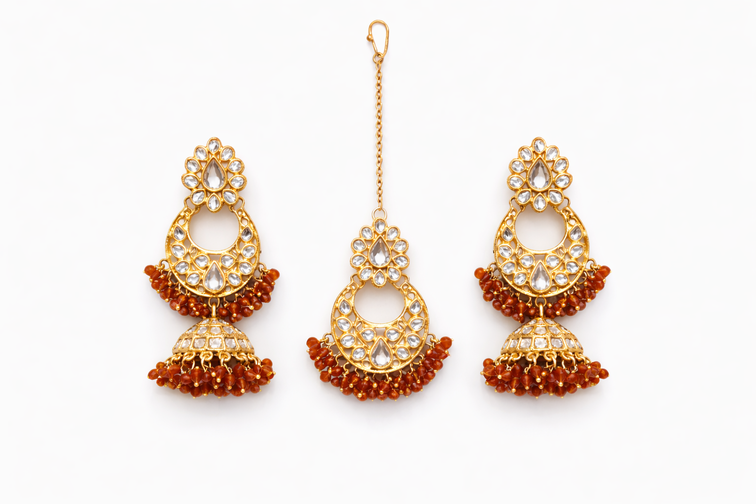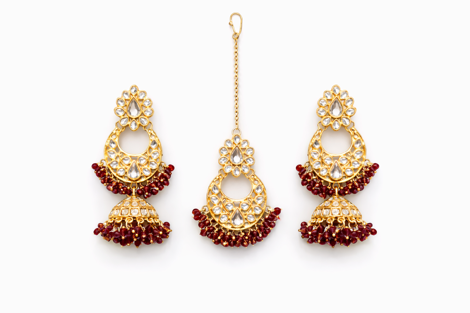 Set Includes: Jhumka Earrings & Matching Maang Tikka