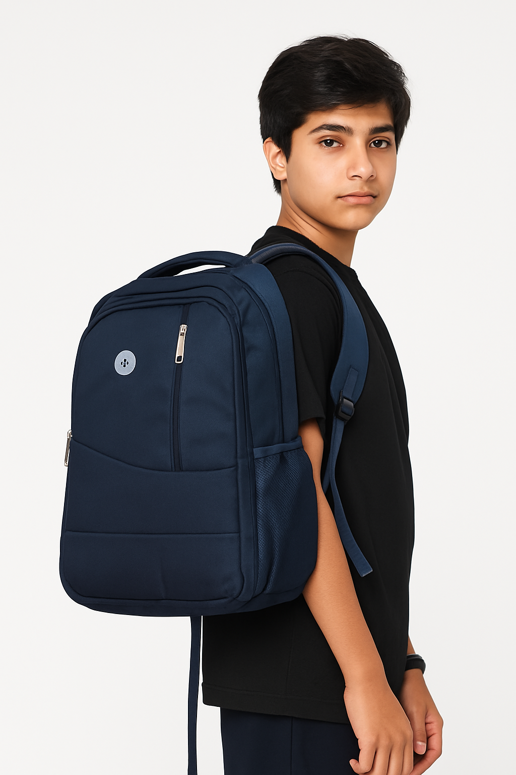 The sleek circular logo and minimalistic design make it a perfect choice for teens who prefer a simple yet premium-looking backpack. Lightweight, practical, and versatile — this bag easily fits books, lunch boxes, stationery, and gadgets.