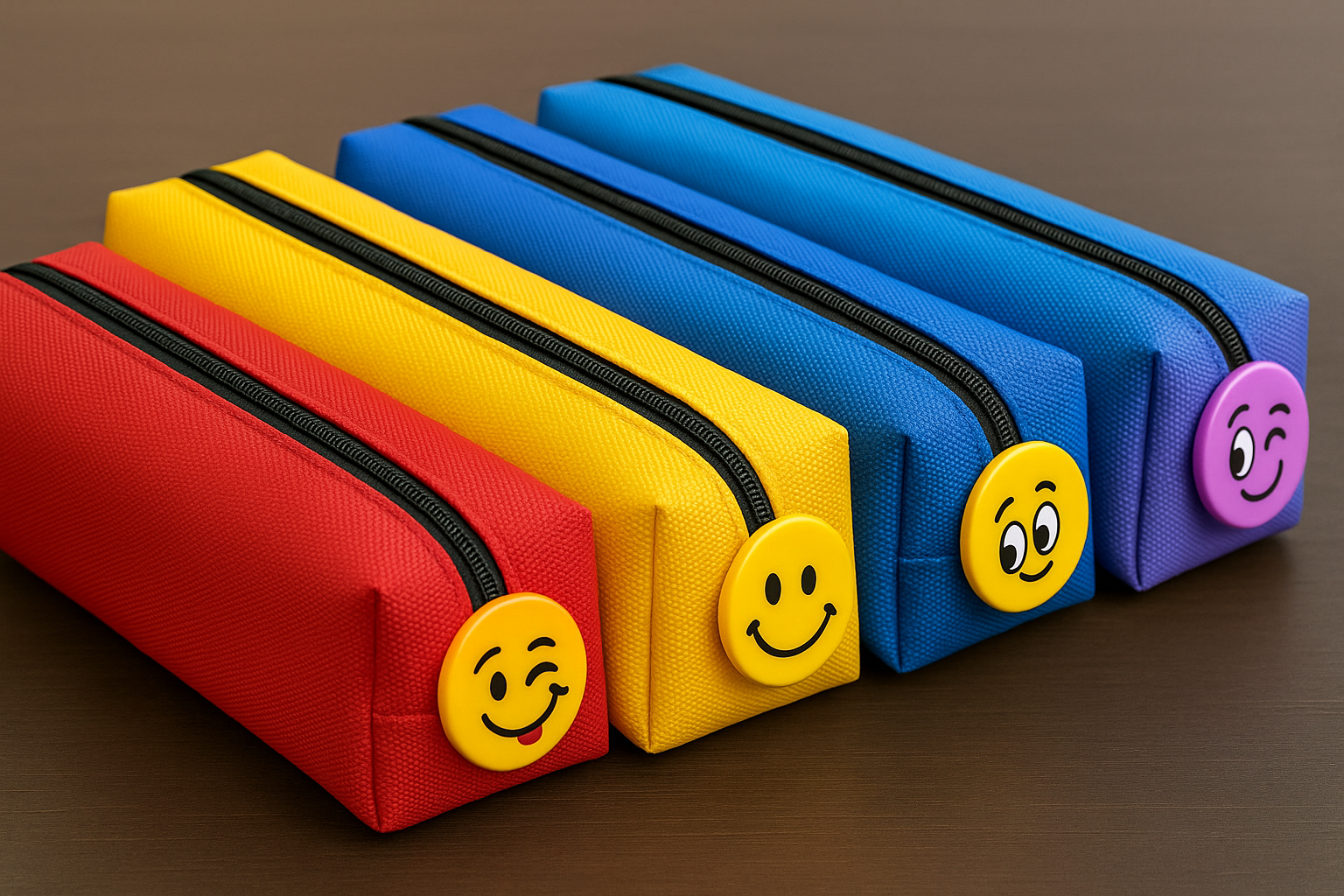 These trendy smiley face pencil pouches are perfect for school, tuition, or home use. Designed with strong fabric, smooth zippers, and adorable emoji badges, they are both cute and durable – loved by kids!