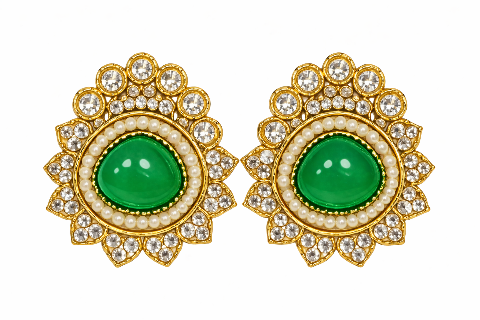 Set in a rich gold-tone base, these earrings offer a perfect blend of traditional and modern style, making them ideal for festive wear, weddings, or special occasions.