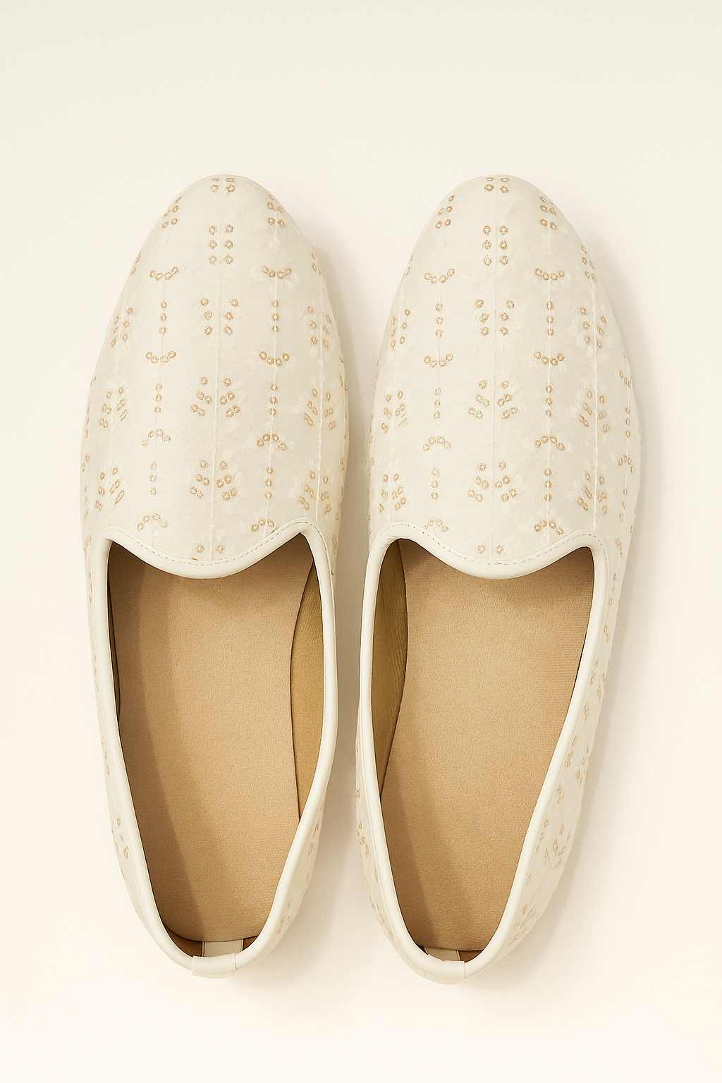 Bring effortless elegance to your ethnic wardrobe with this beautifully handcrafted ivory mojdi. Designed with delicate floral thread embroidery in soft golden tones, this pair offers a subtle yet luxurious finish that complements a wide range of traditional outfits.