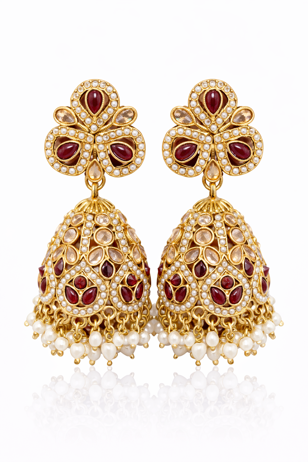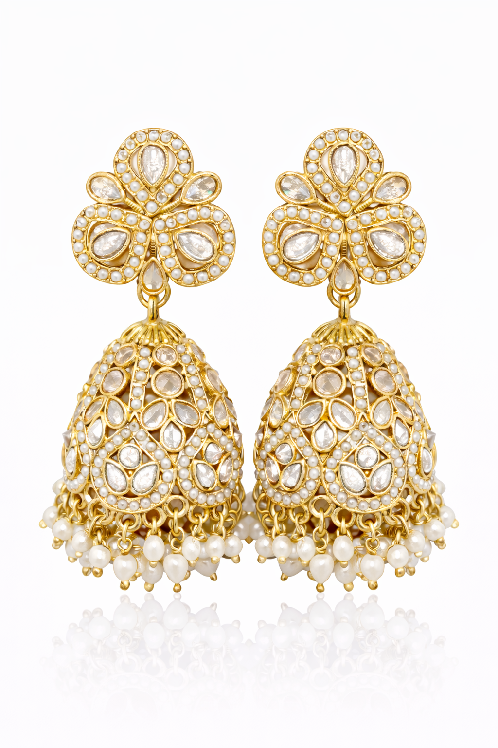 Design: Traditional kundan stud with ornate jhumka drop
