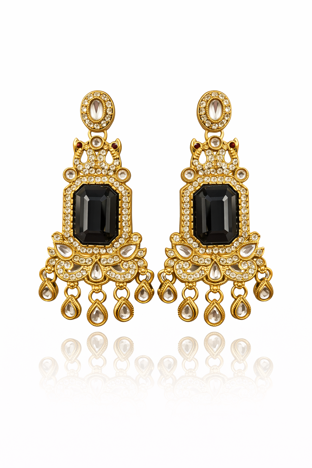 Elevate your festive look with these exquisite statement chandelier earrings, crafted to reflect timeless elegance and intricate artistry.