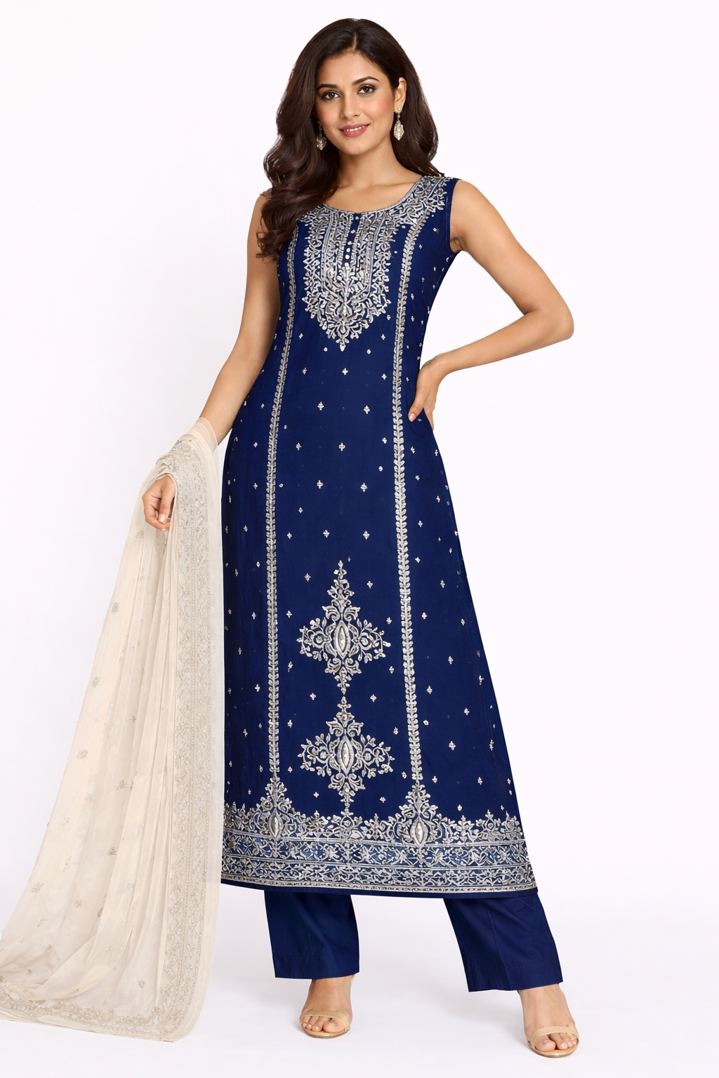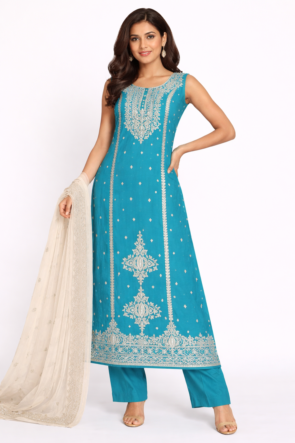 Elevate your ethnic wardrobe with this elegant long straight kameez set, designed for timeless sophistication and everyday comfort. Crafted in a rich solid hue, the kameez features intricate all-over embroidery with a beautifully detailed yoke and ornate border, creating a graceful, elongated silhouette.Paired with matching straight-cut pants and a soft, contrasting dupatta, this ensemble is perfect for festive gatherings, celebrations, and elegant daywear. The refined craftsmanship and classic straight fit make it a versatile choice for all occasions.
