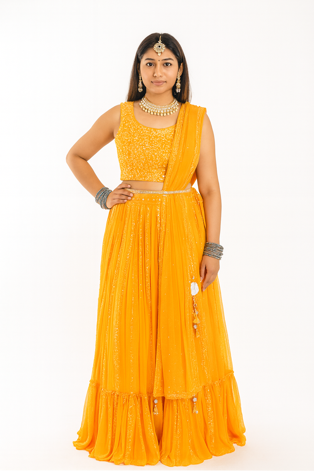 NYSHA LADIES LENGHA SUIT SOFT CHIFFON LENGHA SUIT WITH SEQUENCE LOOKHAND EMBD MIRROR FINISH BLOUSE SLEEVES INCLUDED SEPRATELY BEAUITFUL SOFT CHIFFON DUPATTA SIZE L - BURST SIZE 38-40SIZE XL - BURST SIZE 42SIZE 2XL - BURST SIZE 46ORIGINAL MIRROR AND PREMIUM GEORGETTE