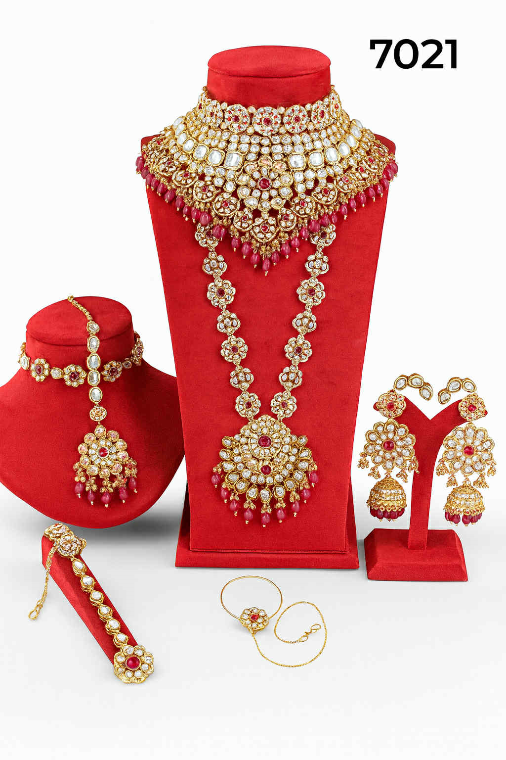 Pair this regal jewelry with a red, maroon, or green bridal outfit for a statement look that exudes grace and grandeur.