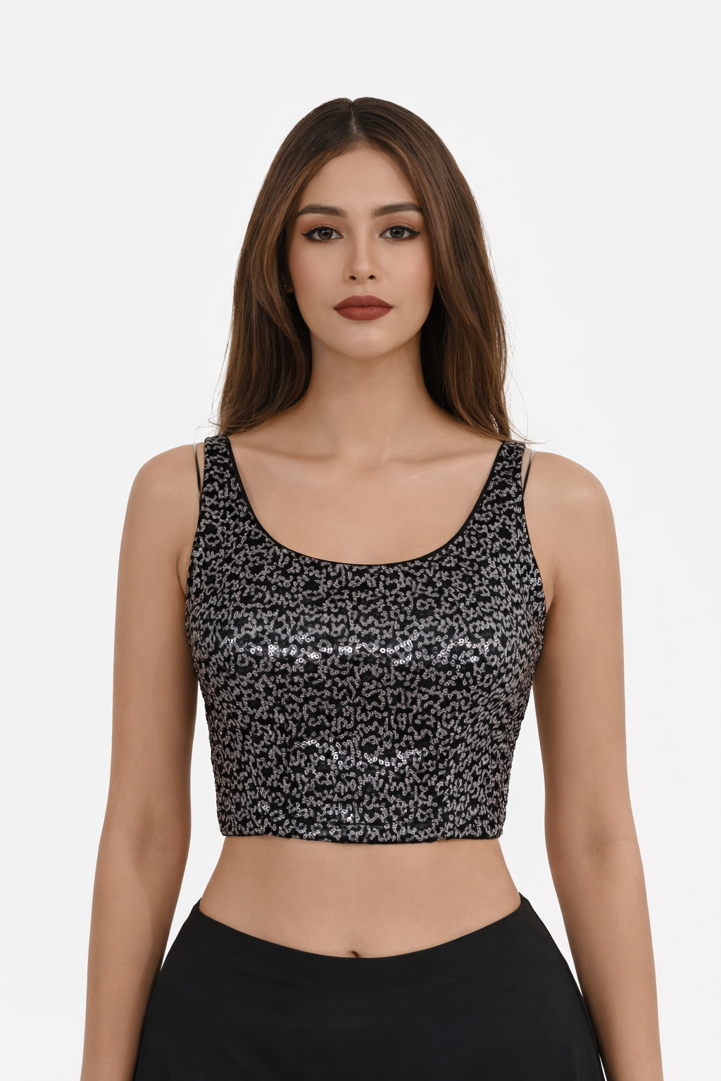 A ladies' sequence saree blouse is a type of women's clothing that complements traditional Indian sarees. It is a blouse or top designed to be worn with a saree, which is a traditional Indian garment consisting of a drape and a blouse. The key characteristic of a sequence saree blouse is the use of sequins or small, shiny decorative elements that add a touch of glamour and sparkle to the blouse. These sequins can be arranged in various patterns, adding an elegant and eye-catching look to the blouse.
