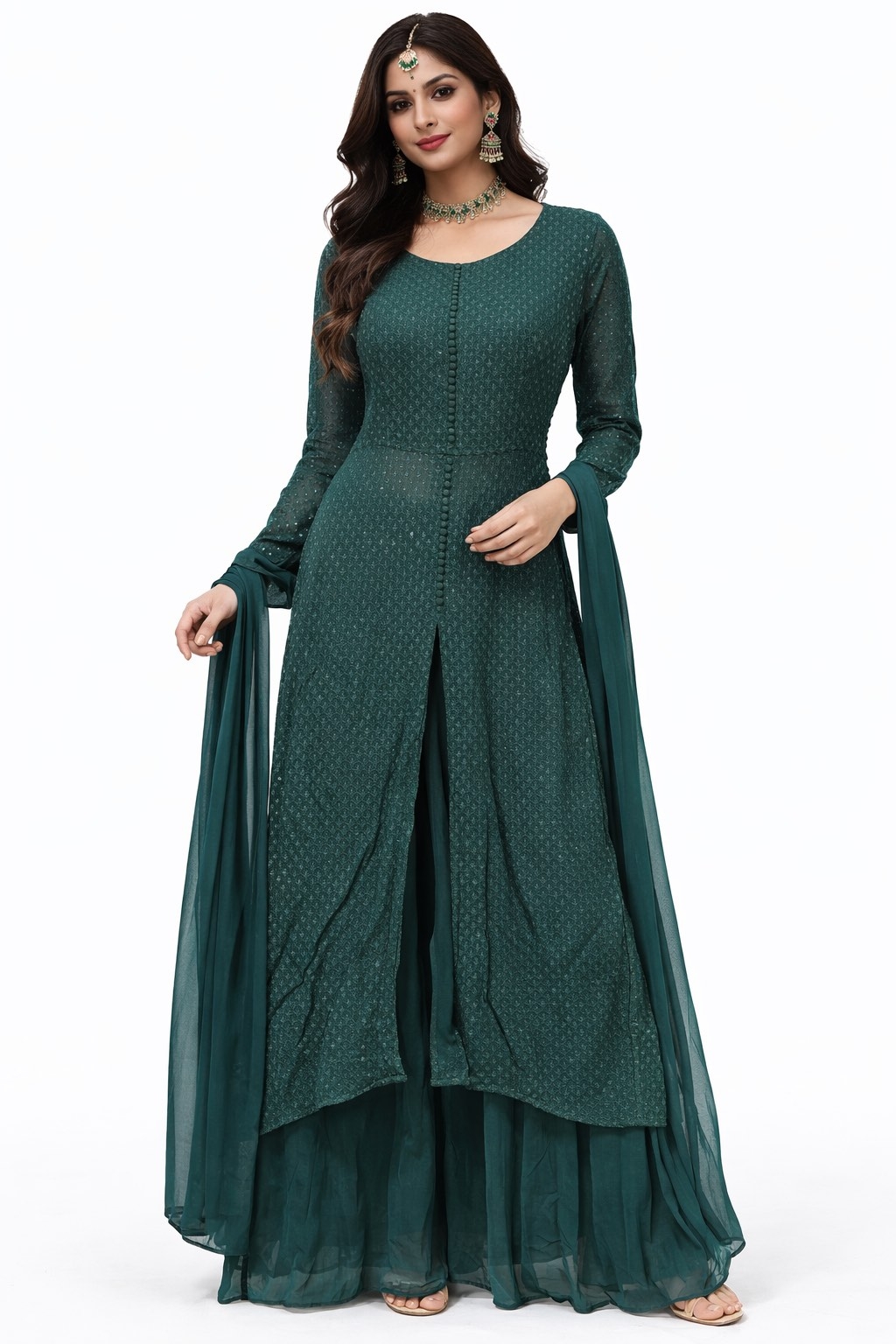 This exquisite ensemble combines the breezy comfort of georgette with intricate embroidery, creating a sophisticated and stylish look that's perfect for any special occasion.