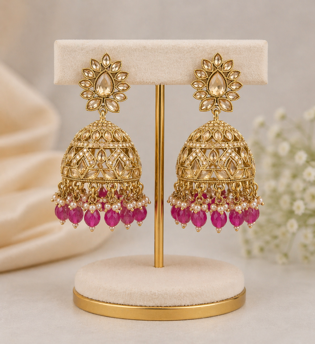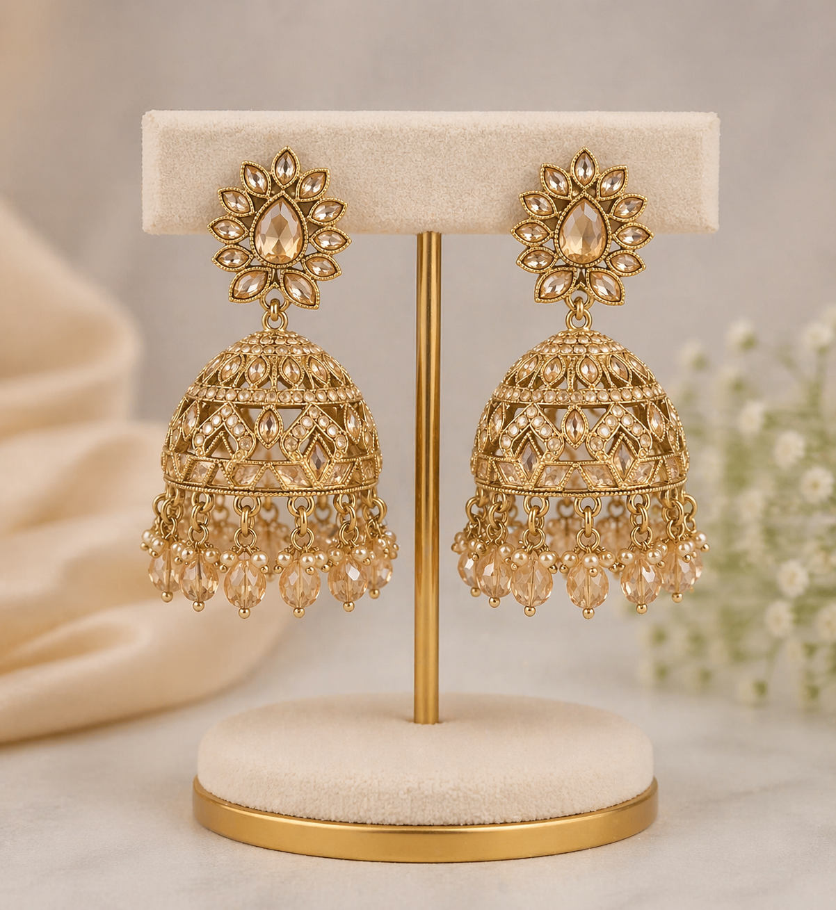 Perfect for weddings, festive occasions, or evening wear, these earrings bring together traditional craftsmanship with a refined modern touch.
