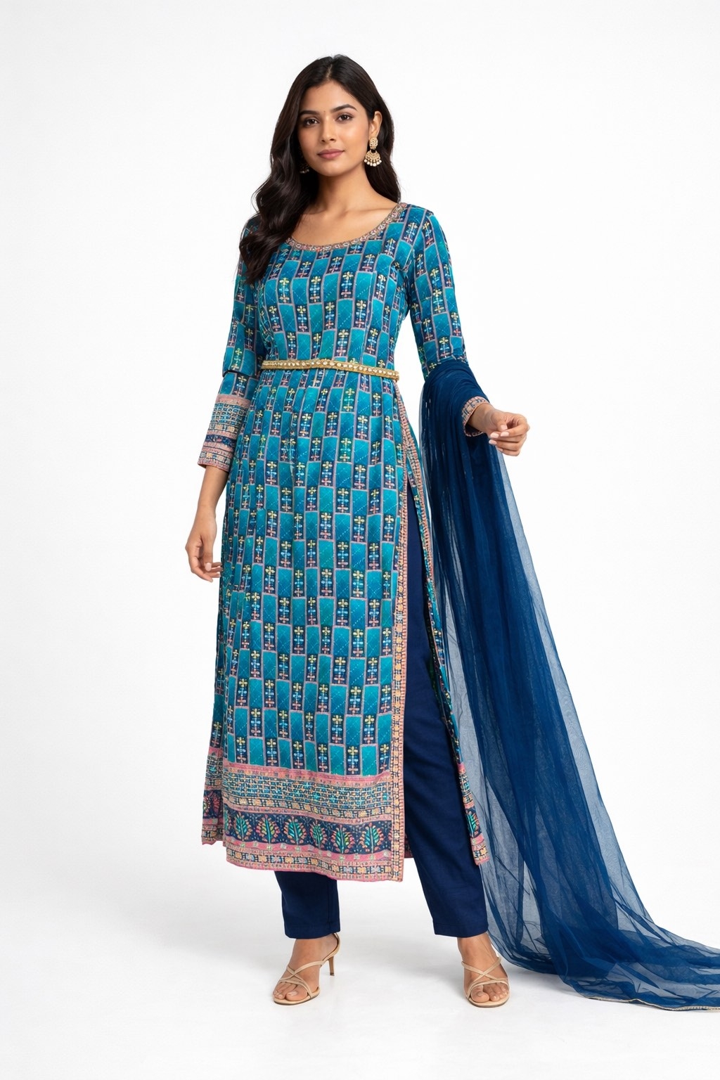 NICE SOFT DIGITALLY PRINT WITH MIRROR AND HAND WORK