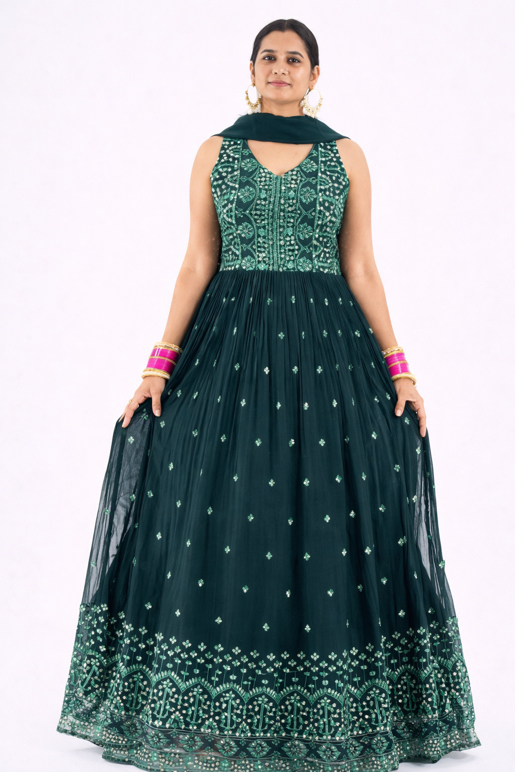 Ideal for weddings, festive celebrations, evening functions, and special occasions, this Anarkali gown is a perfect blend of craftsmanship and comfort.
