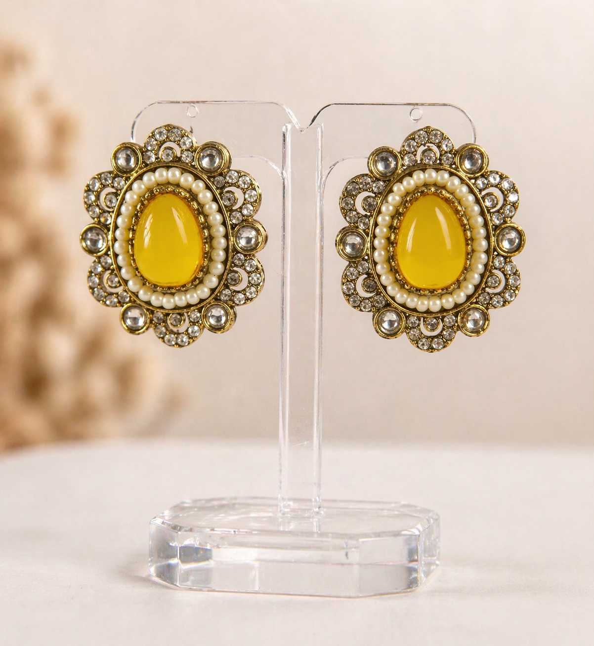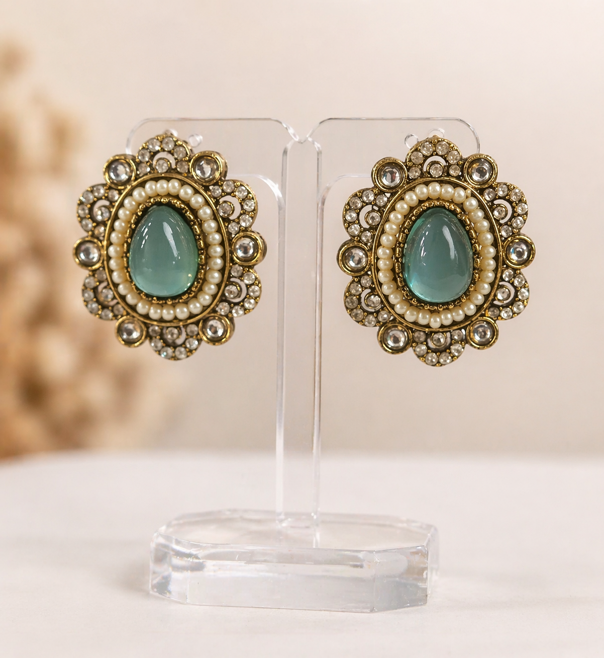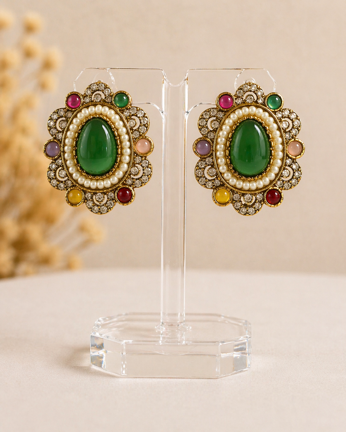 The floral-inspired silhouette adds a royal touch, making these earrings perfect for festive wear, weddings, or special occasions.