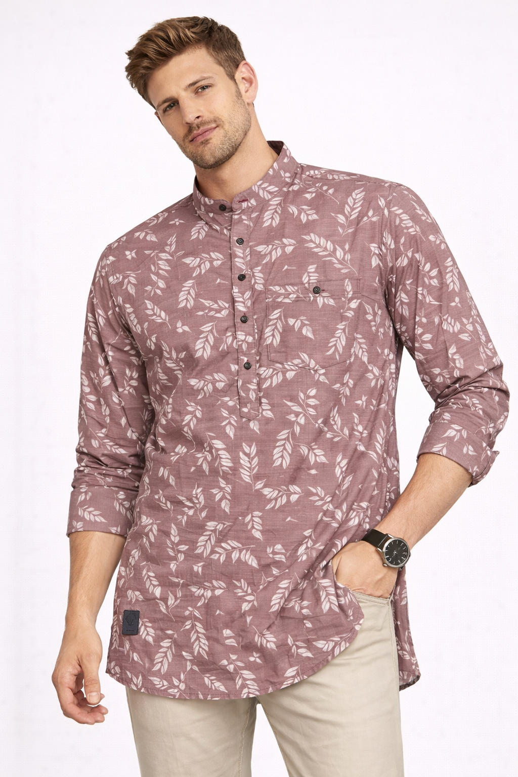 Modern band collar with front button placket