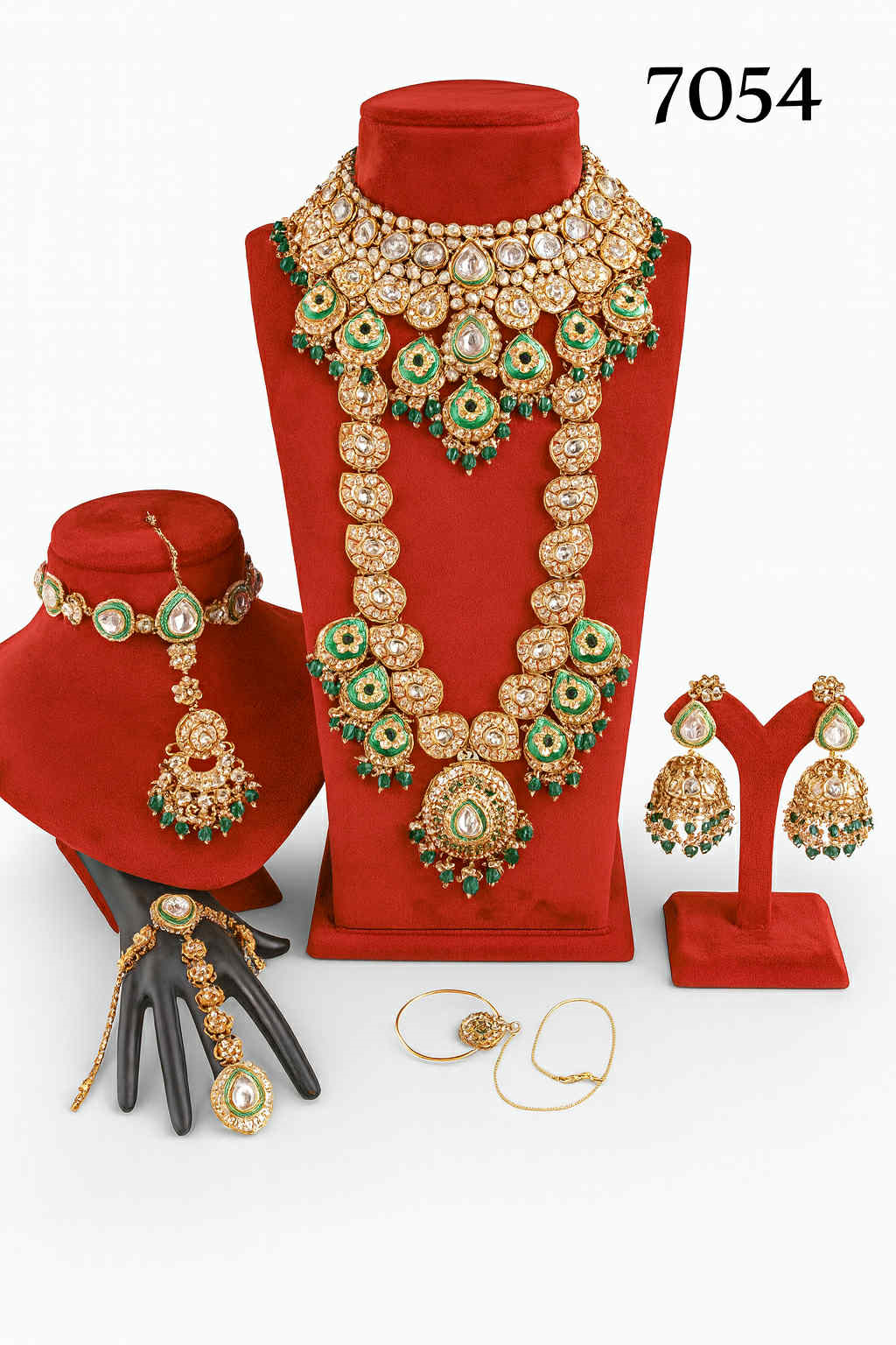 This elegant floral jewelry set in deep plum and pink tones is designed to bring a fresh, graceful charm to your haldi, mehendi, or sangeet ceremony. Perfect for brides and bridesmaids who want to add a touch of floral sophistication to their festive look.