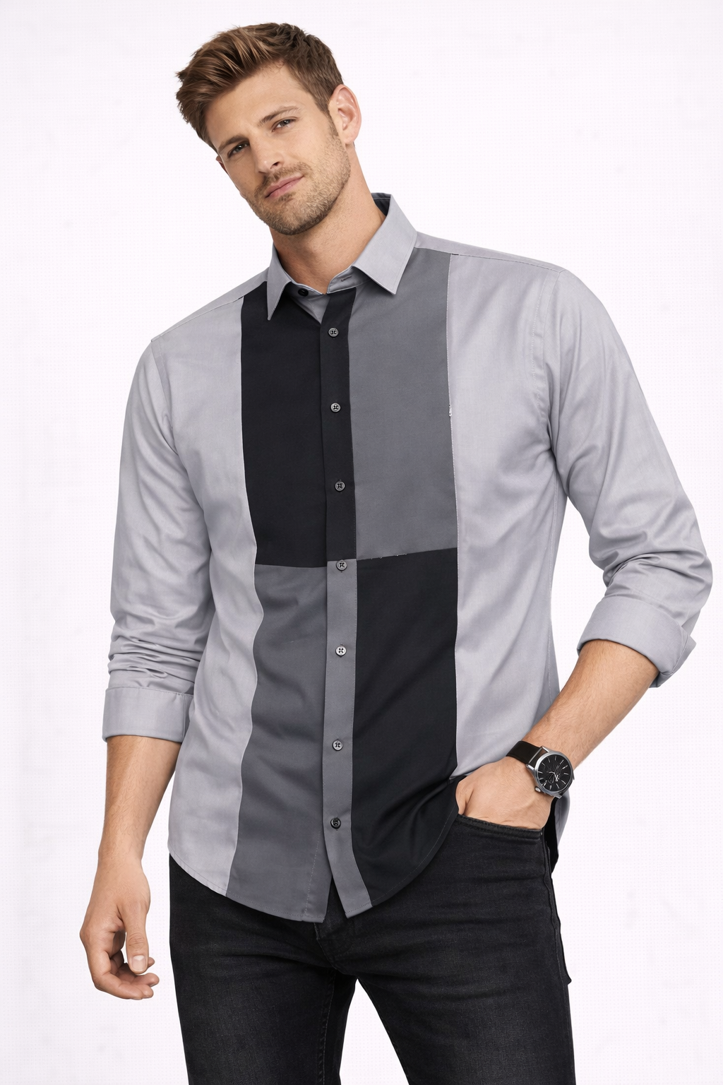 Step into refined sophistication with this Zocco Premium Men’s Color-Block Shirt. Crafted with precision, this shirt features a bold tri-panel front in black and grey, contrasted beautifully against crisp white sleeves and collar.Designed for the modern gentleman, it exudes a perfect balance of elegance and edge — ideal for both formal gatherings and stylish evenings out.